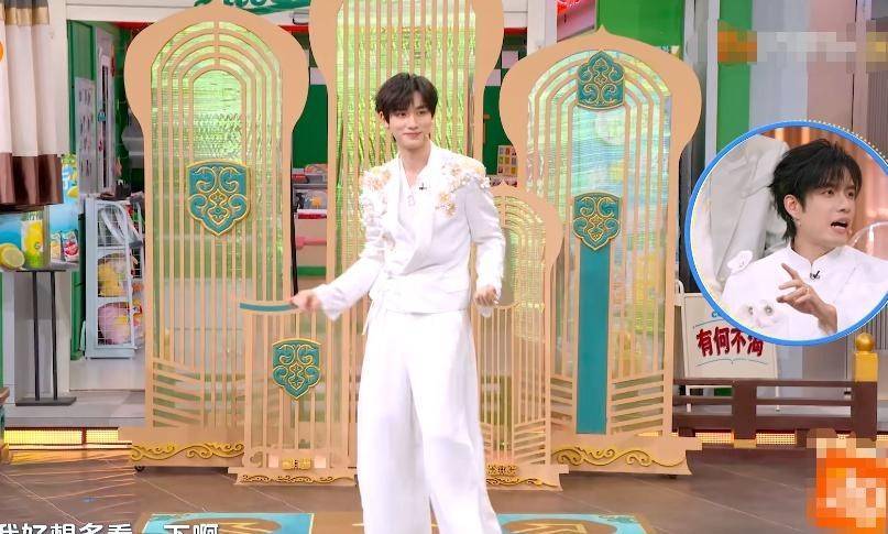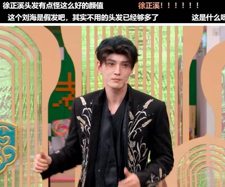 罗云熙倒是卖力得很,为了节目效果又是瞎编贯口又是即兴演戏,台下粉丝尖叫连连,可对比之下,更显得旁边那位像个来打卡上班的。造型也是硬伤,低额假发压得整张脸显沉,发色还和原生头发差一大截,一眼看出是贴片。